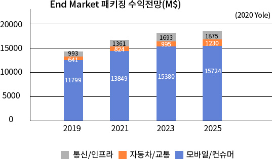 - - ED SiP 성장은 물량 측면에서 2019년-2025년 약 27%로 예측되며, ED SiP 패키징 수익은 2025년까지 자동차, 통신 및 인프라, 모바일 부문에서 모두 11%의 연평균성장률을 보일 전망임