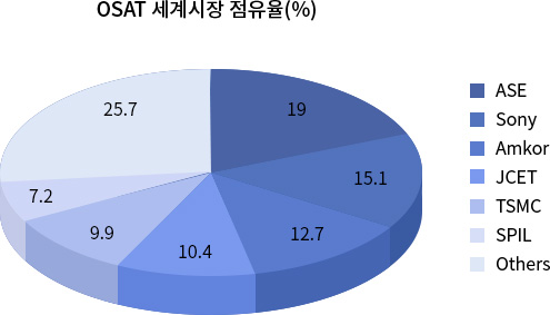 OSAT SiP 시장점유율(2019 총 $13.4B)