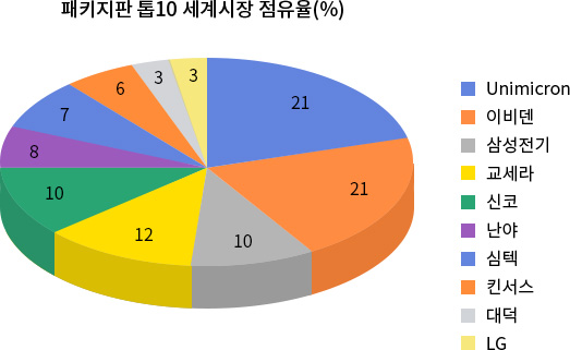 패키지기판 시장점유율(글로벌 톱10, 총액 13,112M$, 2019년)