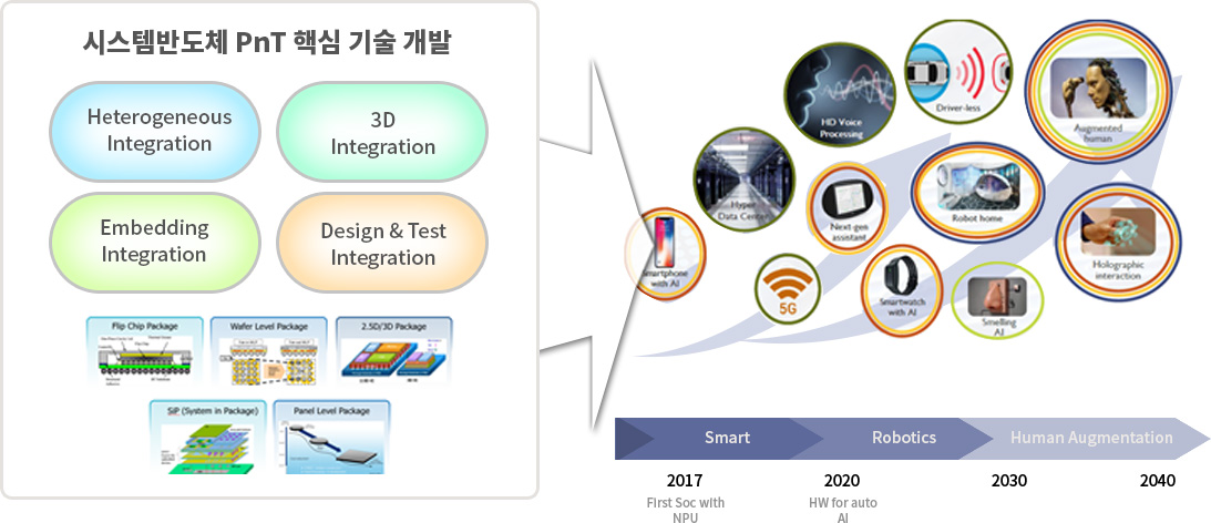 실장기술 기반 구축을 통한 시스템반도체 핵심 패키징 집적화 (Heterogeneous Integration/3D Integration/Embedding Integration/ Design & Test Integration)개발로 시스템반도체의 미래가치 창출
